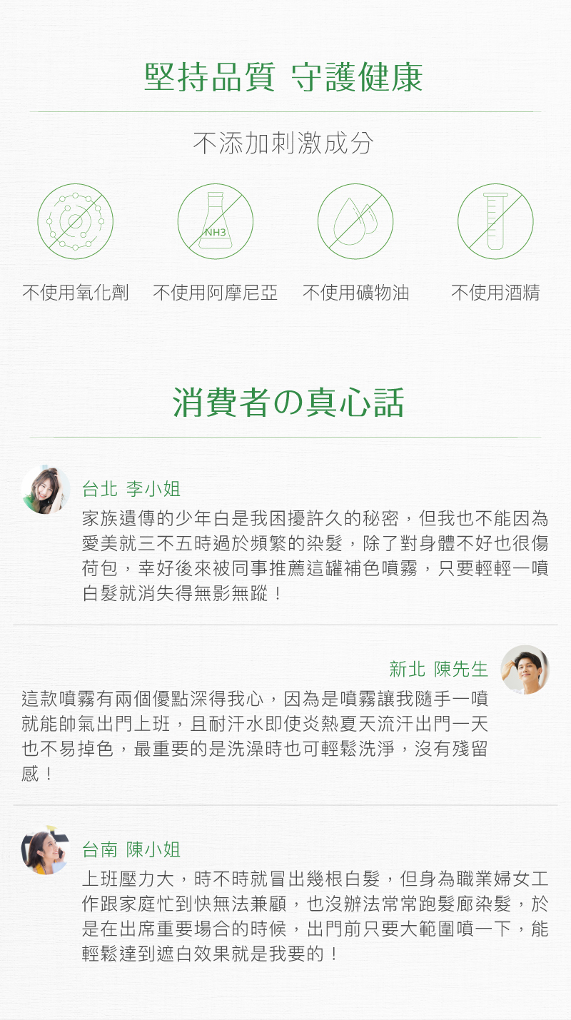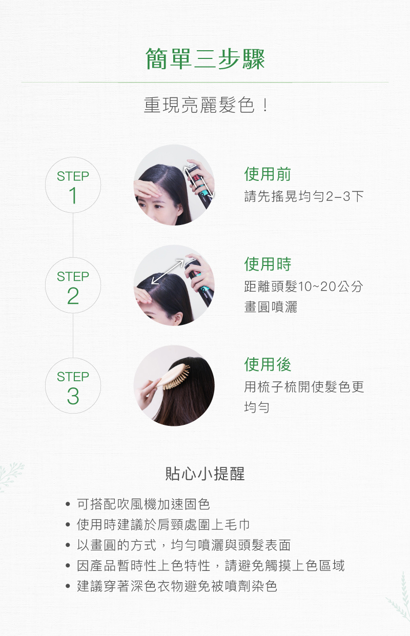 速乾、速效、遮蓋白髮,清水即可洗乾淨