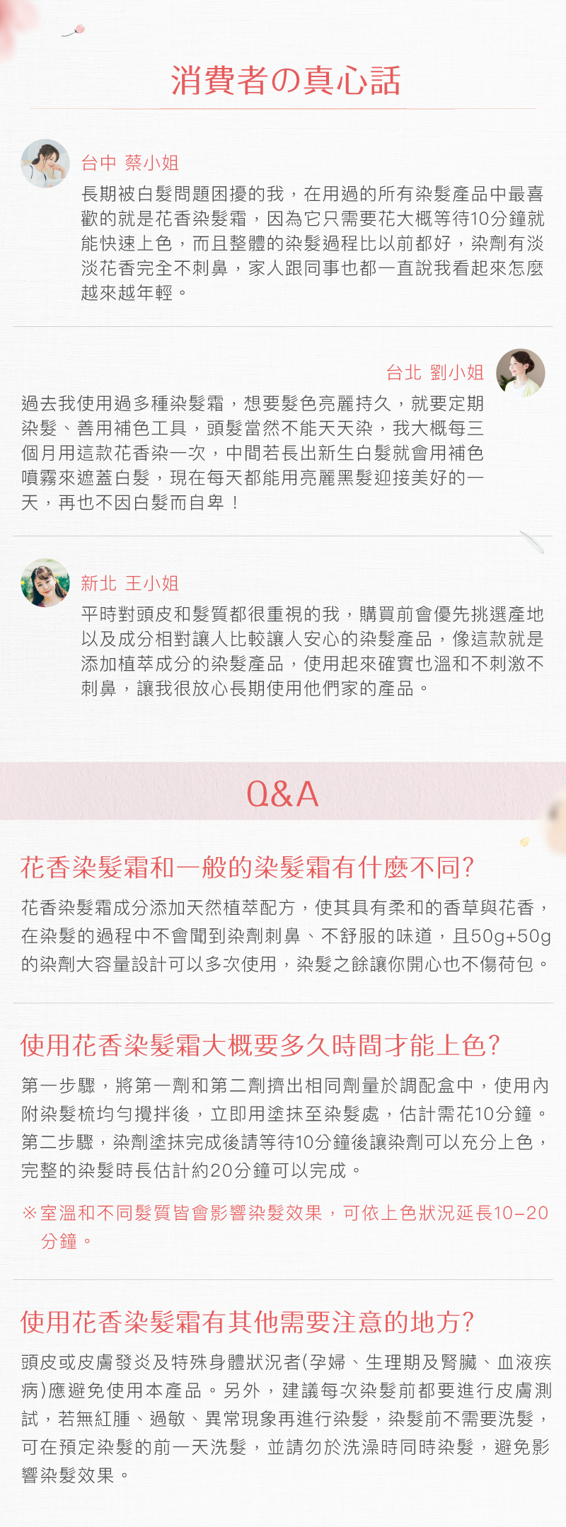 【白髮用】染後髮色會因染髮前的髮色.髮質.室內溫度或放置時間長短而有所差異。